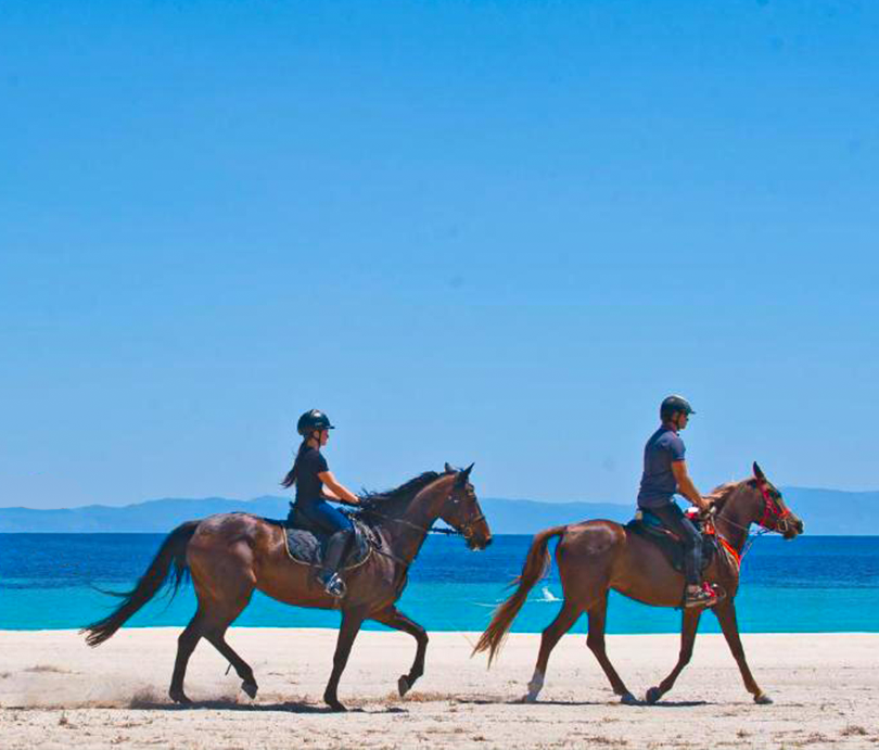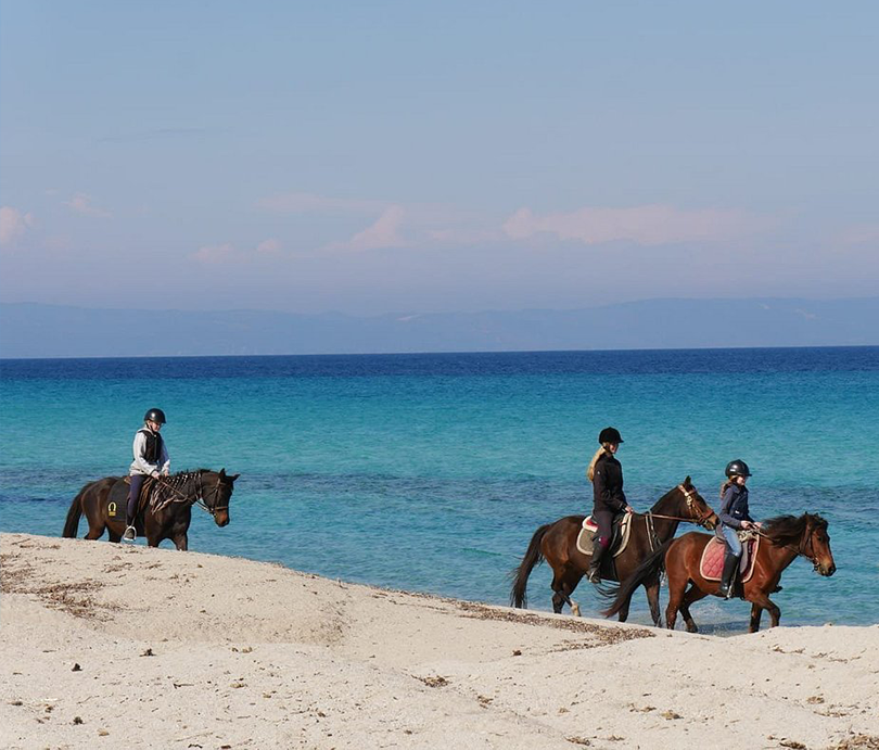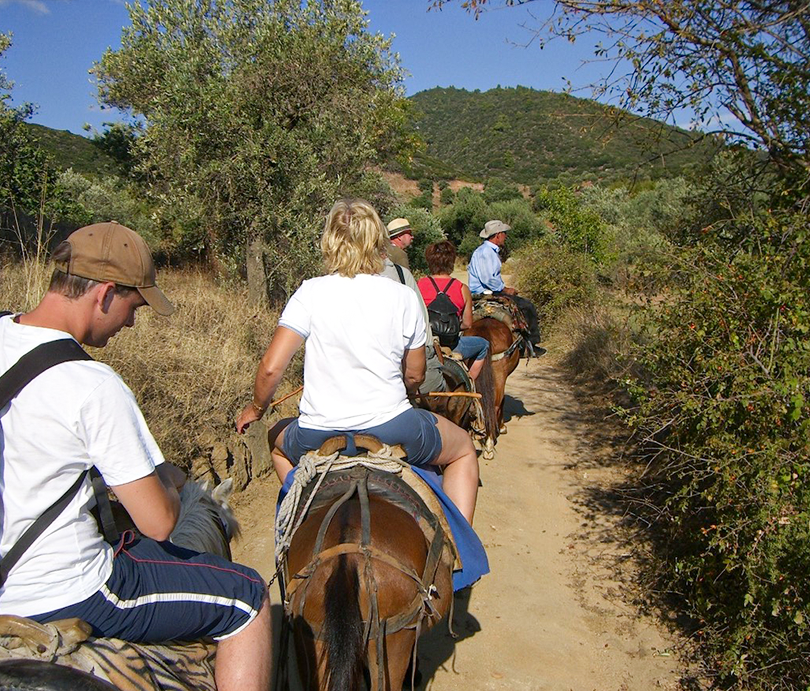 In the paddock outside of the village you will get to know the horses, which you will take a leisurely ride with,along other riders into the mountains or by the sea.
