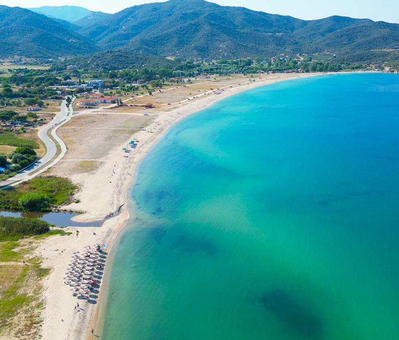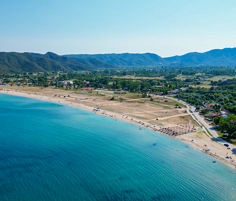 Only 11 km south of Sarti you can find a large blue flag Sykia beach. It is the closest beach to the willage of Sykia about 4 km up the mountain. The beach is very long, clear and with sand on the coast. There are some beach bars and we recommend ALATI.